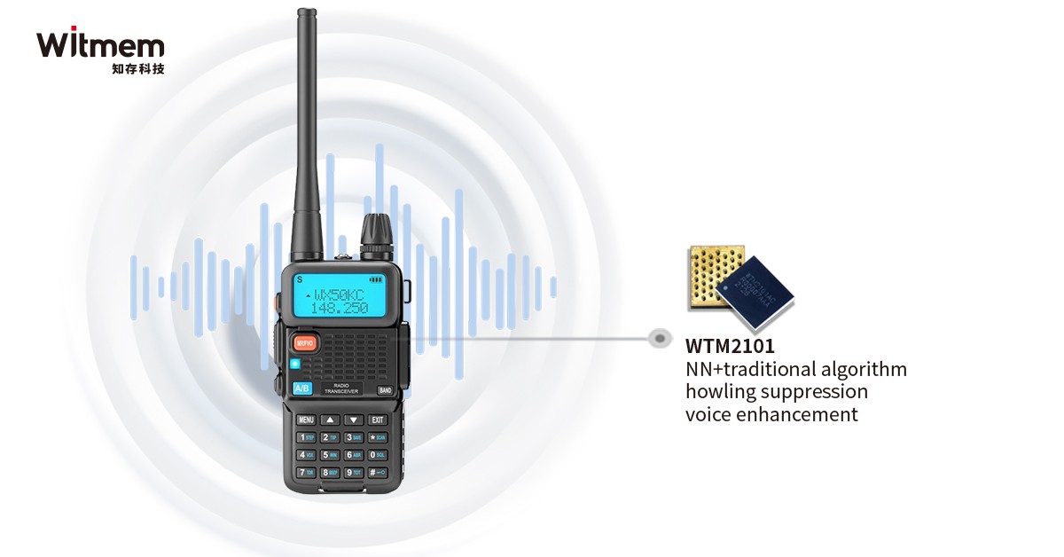 In audio devices such as two-way radios, WTM2101 can be used for howling suppression, noise reduction, and other functions to improve speech recognition accuracy and communication quality. In addition, WTM2101 also supports voice enhancement, echo cancellation, and other functions, further improving the performance of audio devices.